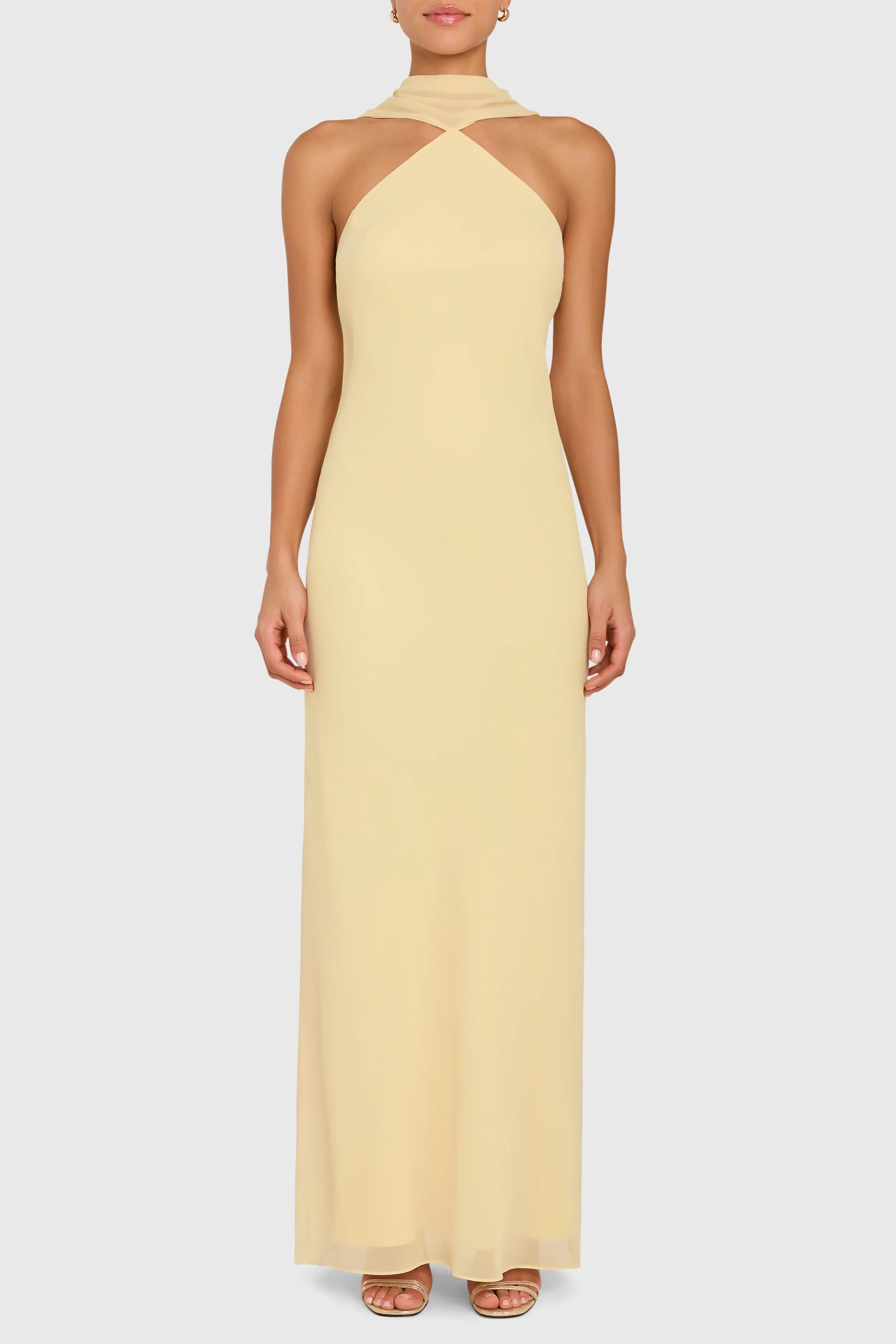 Leave your mark in the Ashton Maxi. Featuring a scarf-like neckline that drapes gracefully down your back, this textured satin dress is made for grand entrances. Pair with gold strappy heels for a fun yet elegant look.
