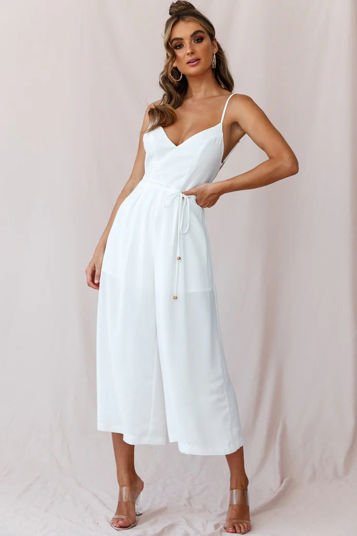 Make a statement in this classy jumpsuit. Partially lined, it features a super cute spaghetti belt, fitted bodice, bang on-trend wide-leg pant and ultra hot, low back with adjustable straps. Wear it with pointed toe pumps or clear heels and a statement necklace for a super chic look. You got it, girl!