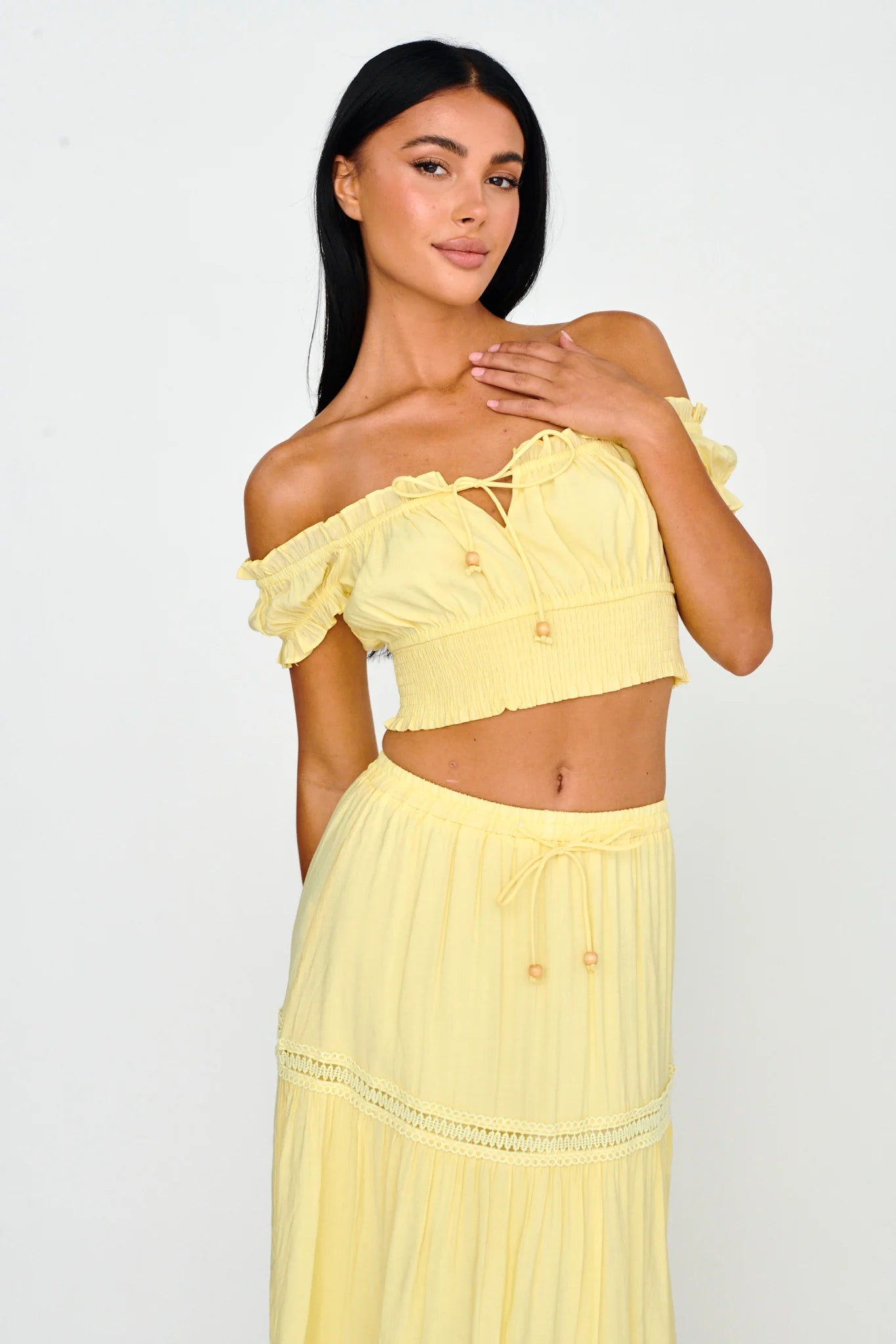 Float on by in our pretty Canyon Cove crop top. Featuring shirring in the waist and puff sleeves, it's perfect for Sunday brunch with your besties. Team it with its matching maxi skirt and sandals for a breezy, boho look we are loving.