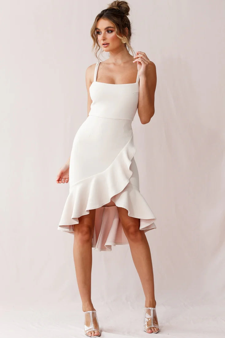 Get everyone's attention as you dance the night away in our hypnotizing Cartagena dress. Featuring a square neckline and fluted, high-low asymmetric hem, it's perfect for those balmy nights at your favorite rooftop bar, batting your eyelids at the cutest boy you can find. Team it with clear heels and gold hoop earrings and get ready to turn heads.