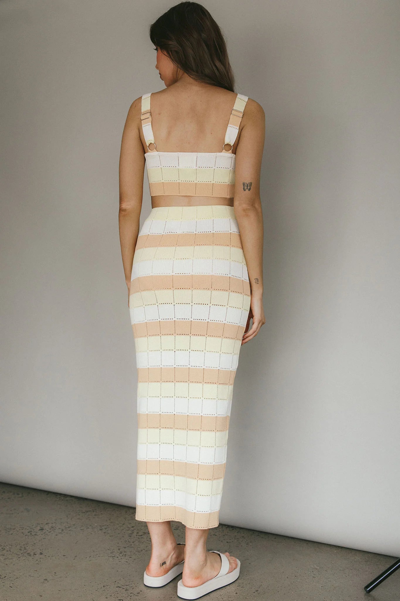 The weather's getting warmer and the days are getting longer. Our Chase The Sunrise top is just what you need to complete your Summer wardrobe. Featuring a crop length and soft knit, it's perfect for weekend coffee dates with your girls. Team it with its matching maxi skirt for a look we are loving.