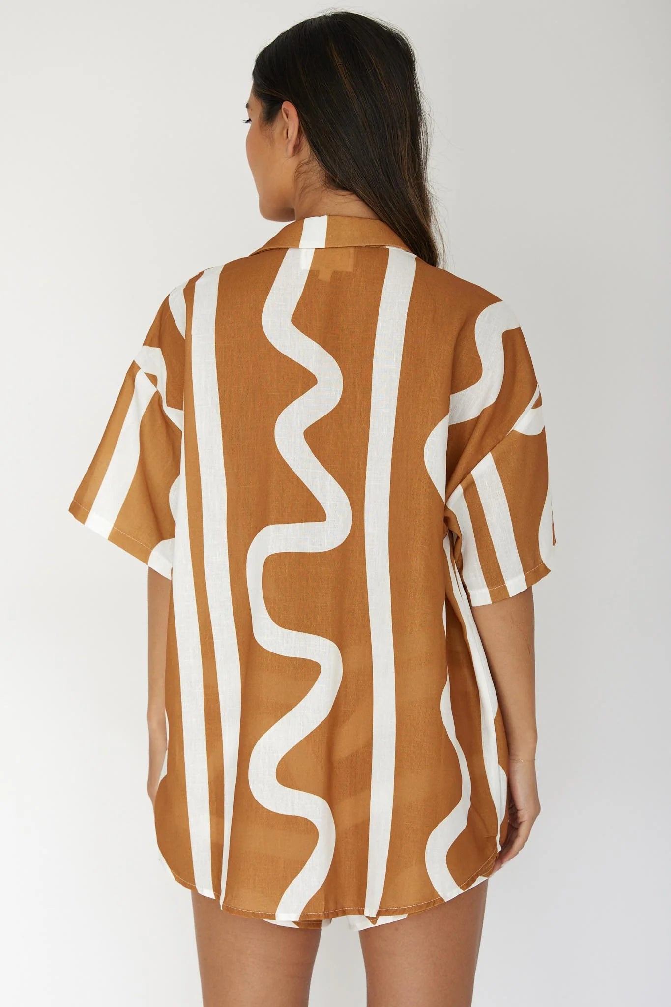 Cruise through your weekend in our super cute Cora shirt. Featuring a chic print and button-up front, it's perfect for weekend coffee catch-ups with your BFFs. Team it with its matching shorts and slides for an effortless, cool look we are loving.