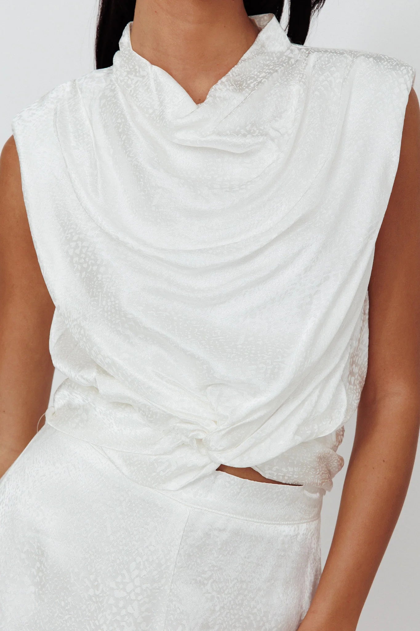 Make an entrance in our pretty Cruising top. Featuring a draped style with a twist in the waist, it's perfect for dinner and cocktails with your girls. Team it with a mini skirt and metallic heels for a look that is sure to turn heads.