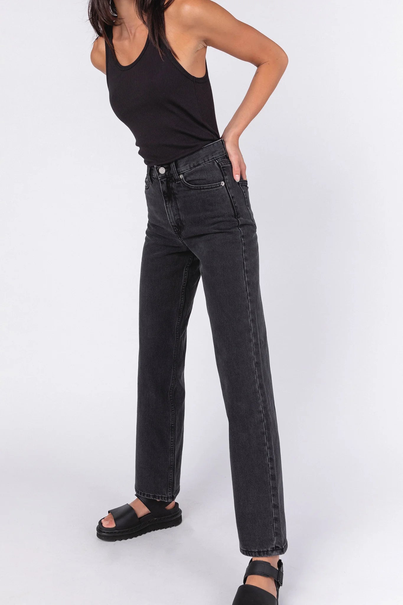 The Echo Concrete Black Straight Leg Jean is our vintage fit jean that puts emphasis on the waist. With a sky high rise and a straight leg, this style offers a flattering fit and rests perfectly on the shoe. Made from a rigid 100% cotton, Echo has a truly authentic retro look.
