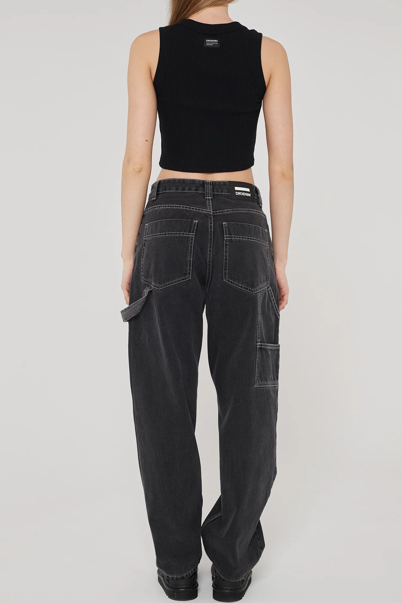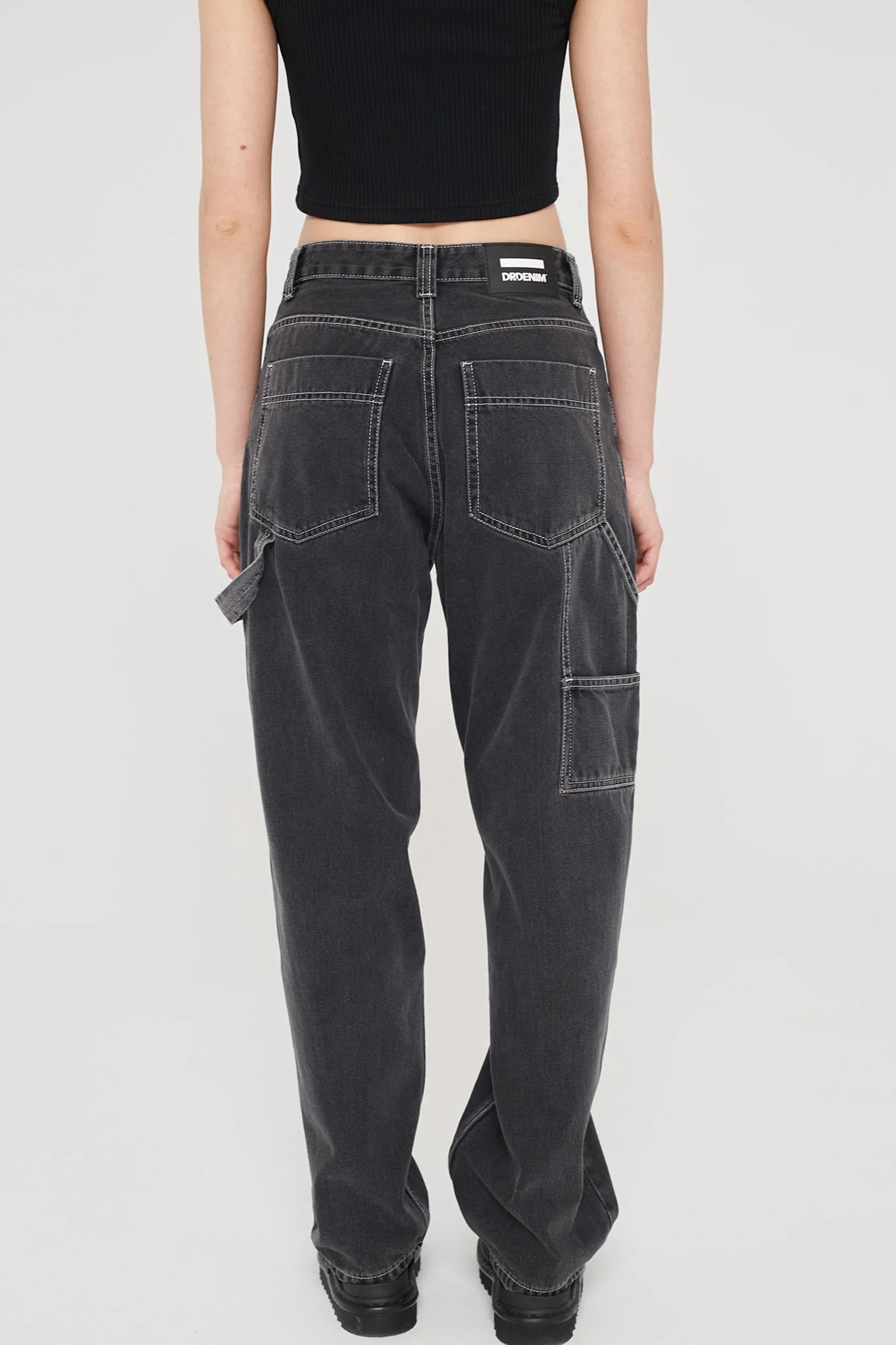 The newest style to our Women's Denim. Meet the Faye Worker in Concrete Black , designed for a slouchy, baggy fit that sits low on the hips, much like pairs from the '90s. Perfect for the upcoming festival or running the day to day errands, pair her with a basic crop or oversized tee. With a wide leg that slightly tapers at the hem. Featuring workwear detailing, made to sit on the hips with the crotch dropped low. A versatile style that can be worn true to size Lauren wears size small here, or size down to wear them higher on the waist.