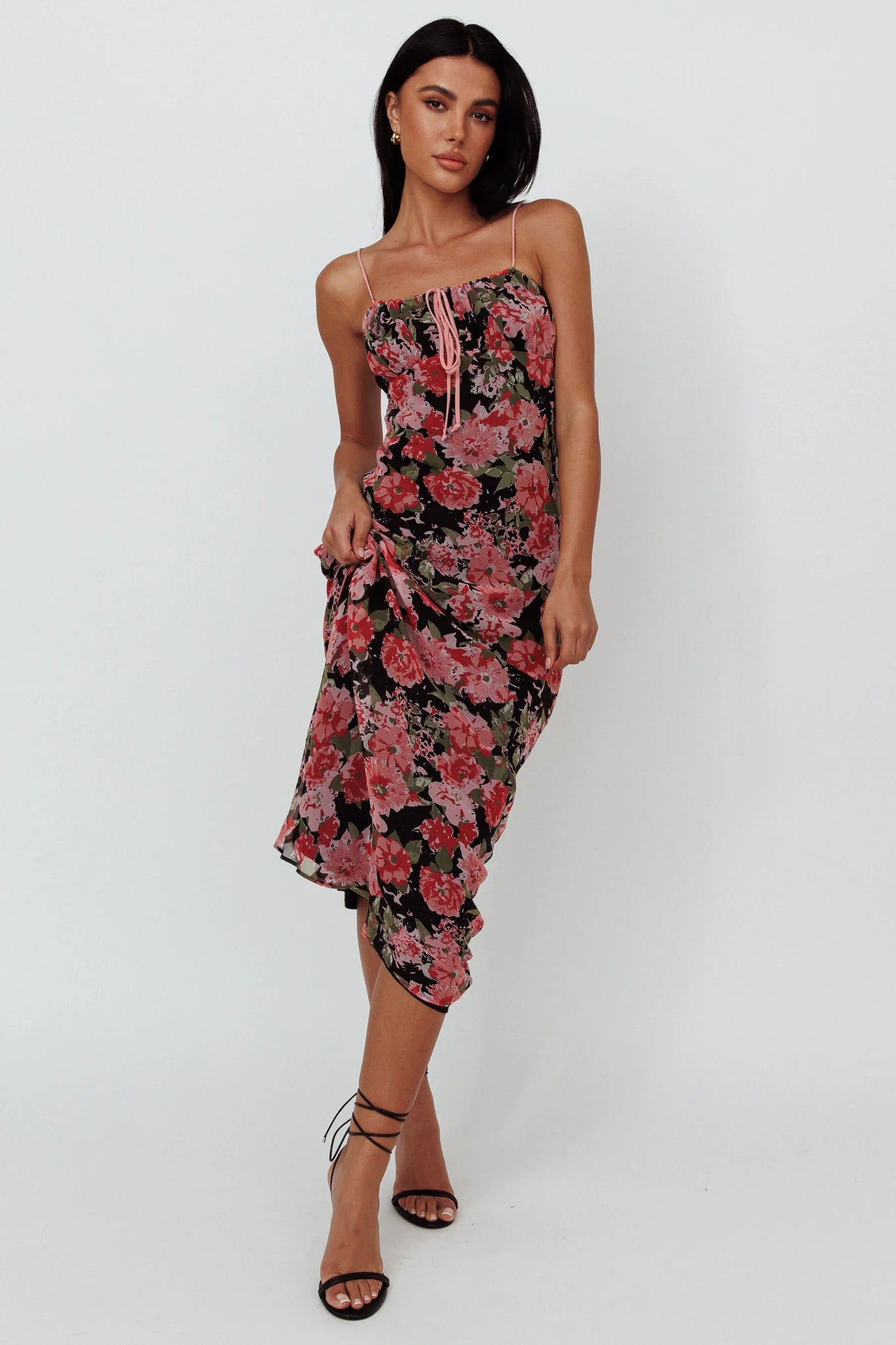 You will be flooded with compliments in our super cute Essence maxi dress. Featuring a string tie in the bust and pretty, floral print. Perfect for a date night or birthday party teamed with strappy heels and a saddle bag.