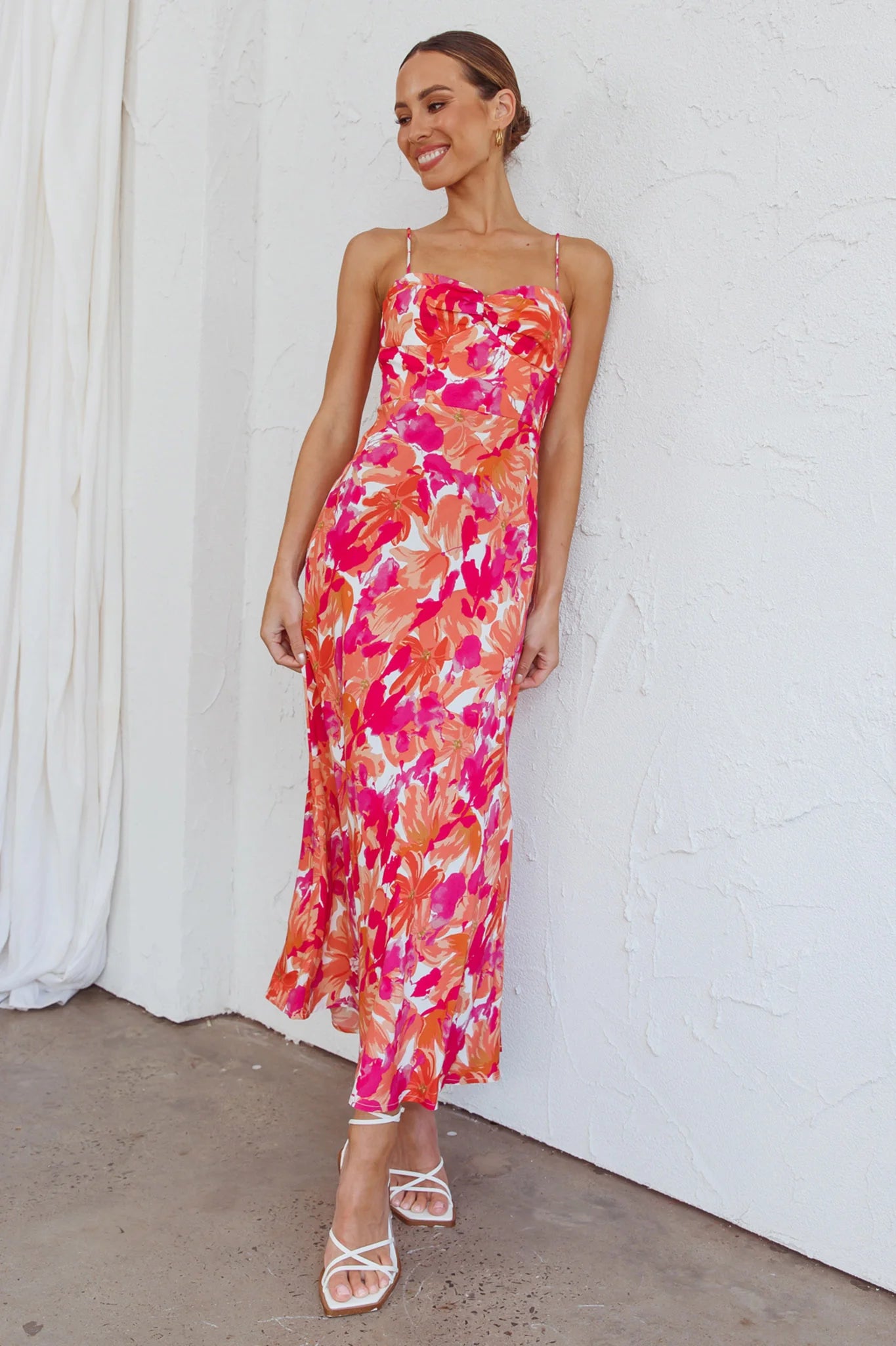 Breeze through the Summer in our pretty Golden Sands dress. We are loving its classic silhouette and bright floral print. Perfect for Sunday Brunch or date nights. Team it with mules and a tote for a super cute look we are loving.