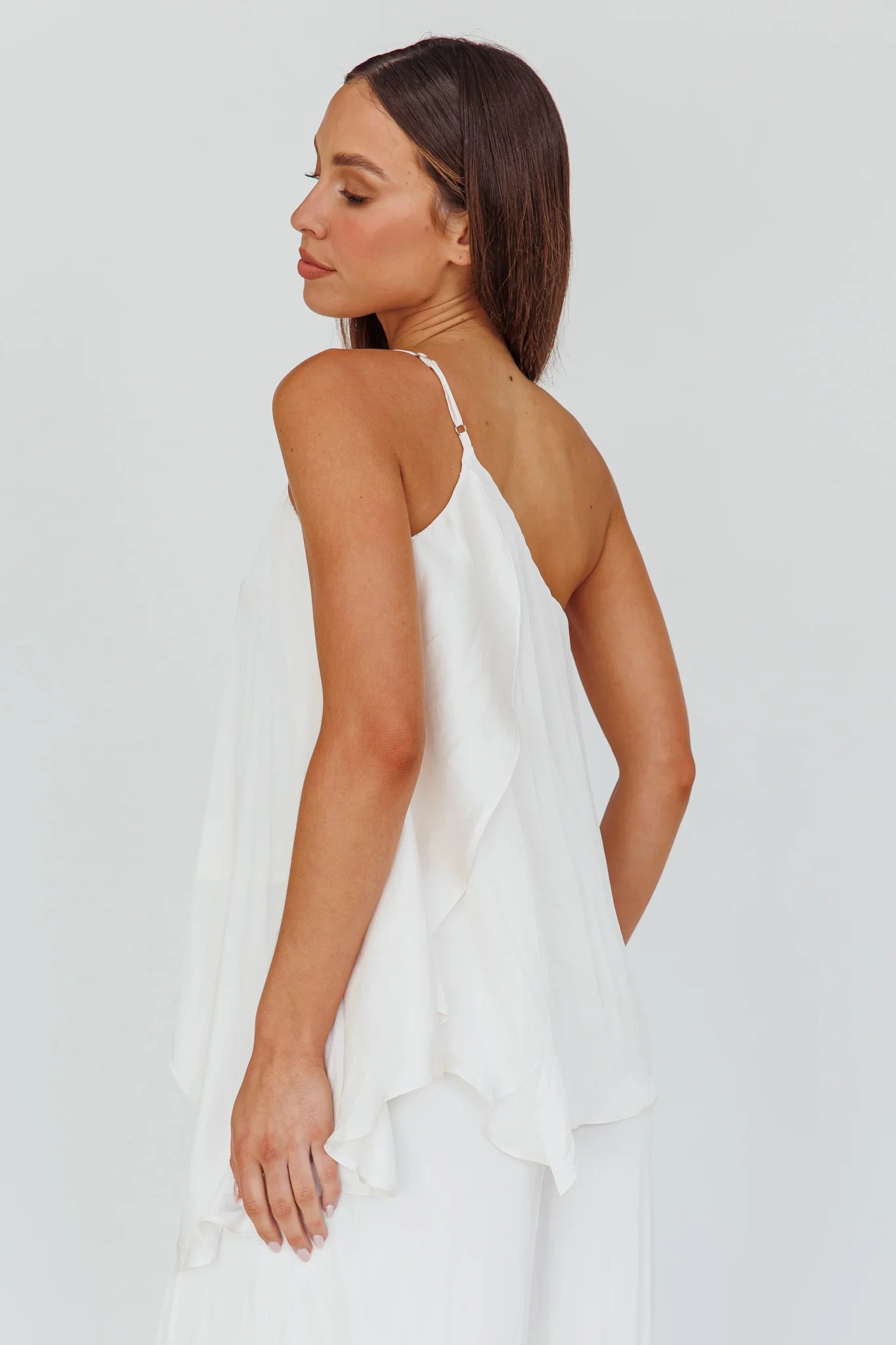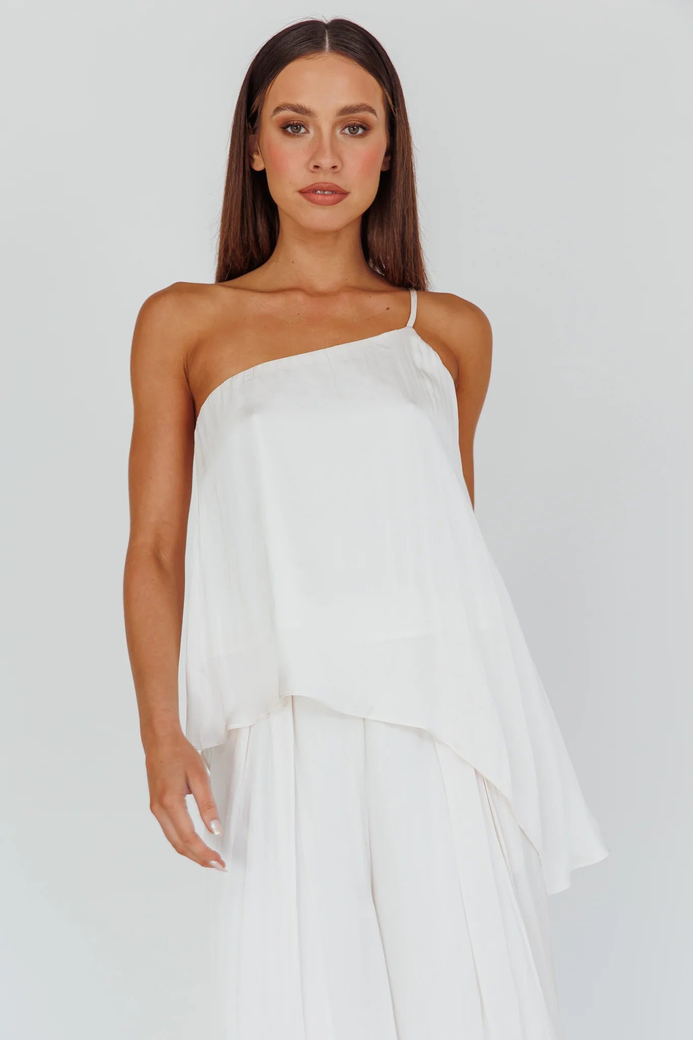 You'll go straight to the best-dressed list in our chic Pollina top. Featuring an on-trend, one-shoulder style, it's perfect for your 9-5 or a night out with your girls. Team it with its matching pants and kitten heels for a classy look.