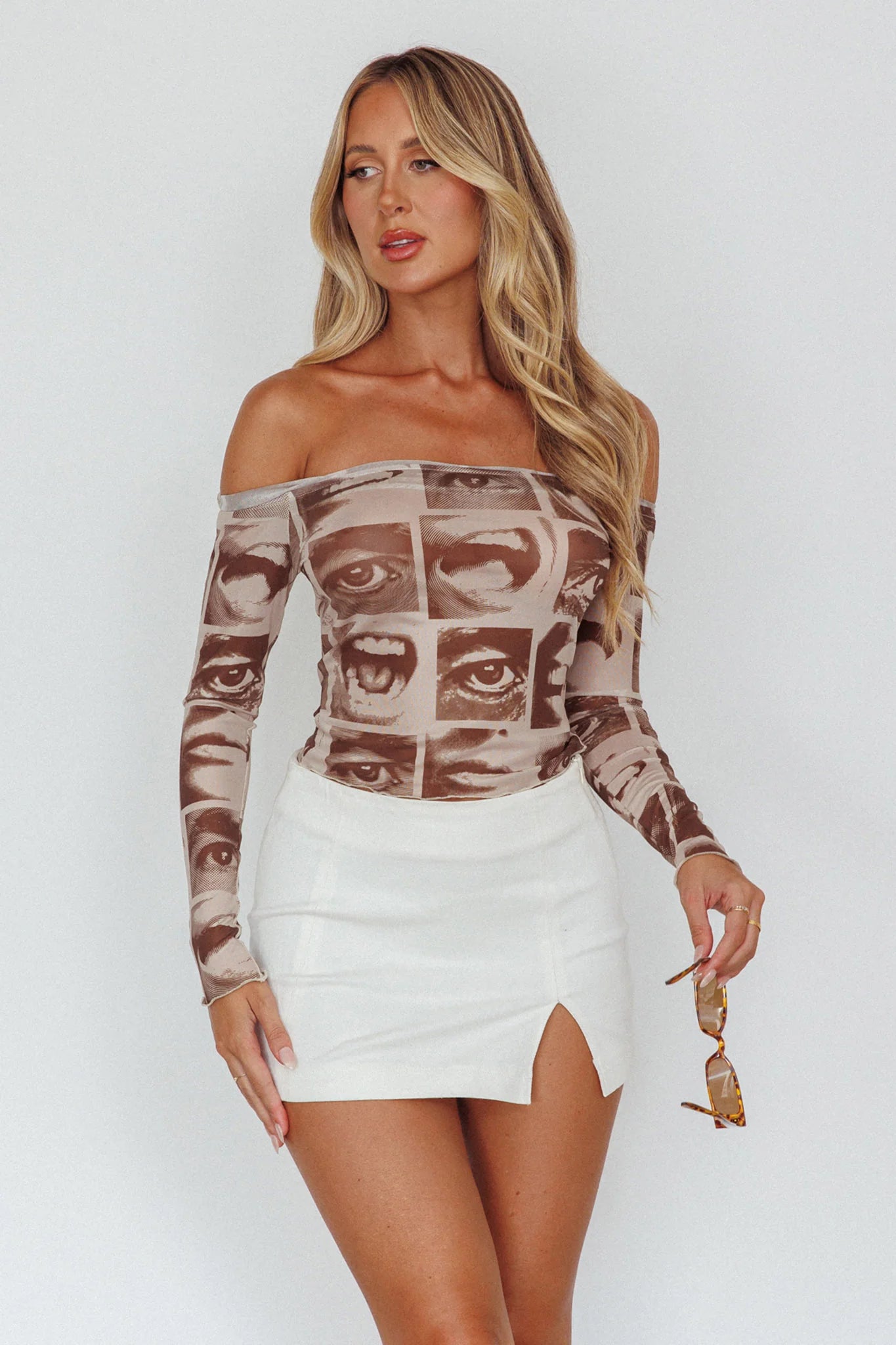 You'll get all the attention in our hot Ramona top. Featuring a trendy print and off-shoulder style, it's perfect for your 9-5 or a night out with the girls. Team it with wide-leg jeans and mules for a chic look that will turn heads.