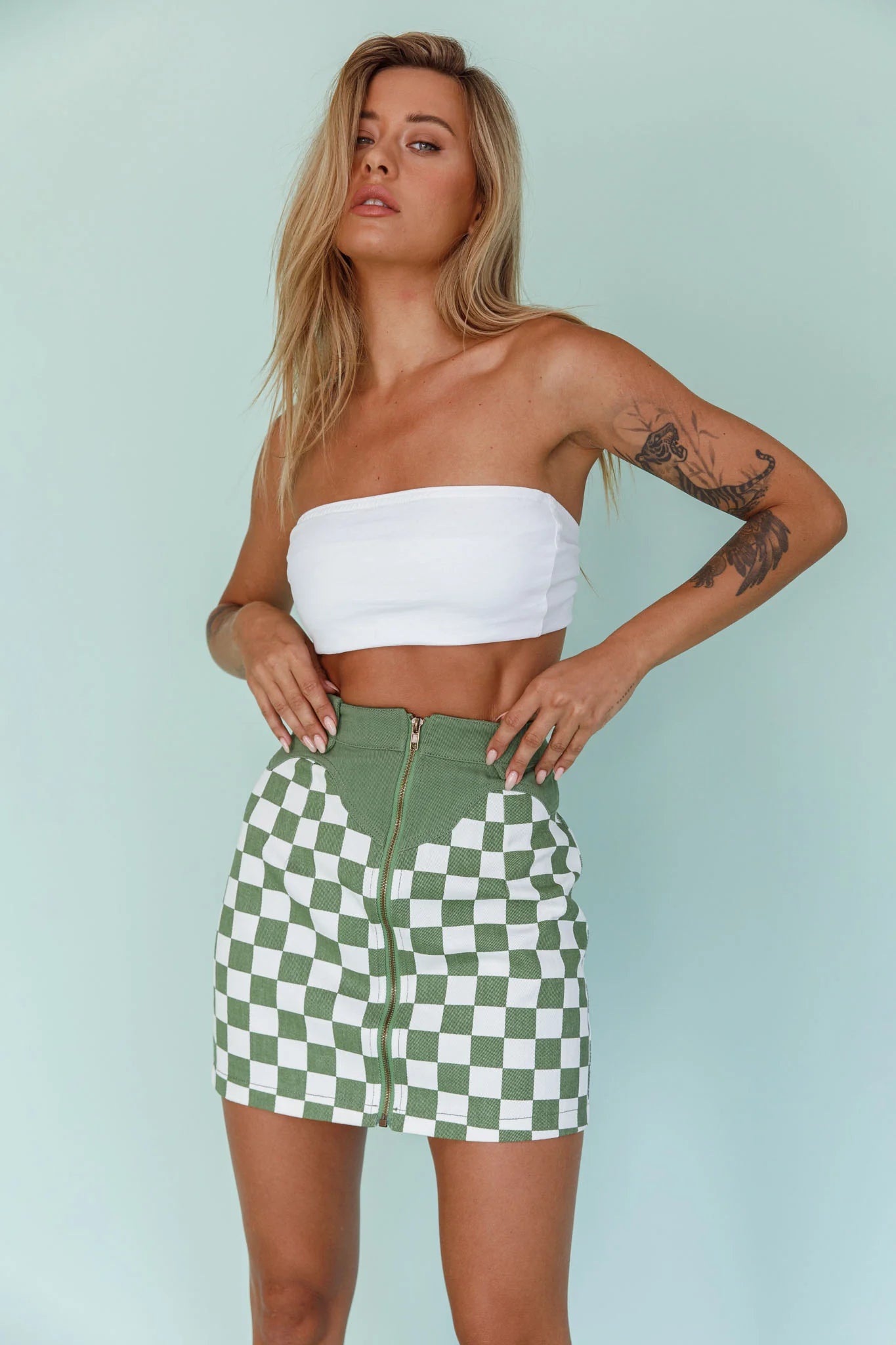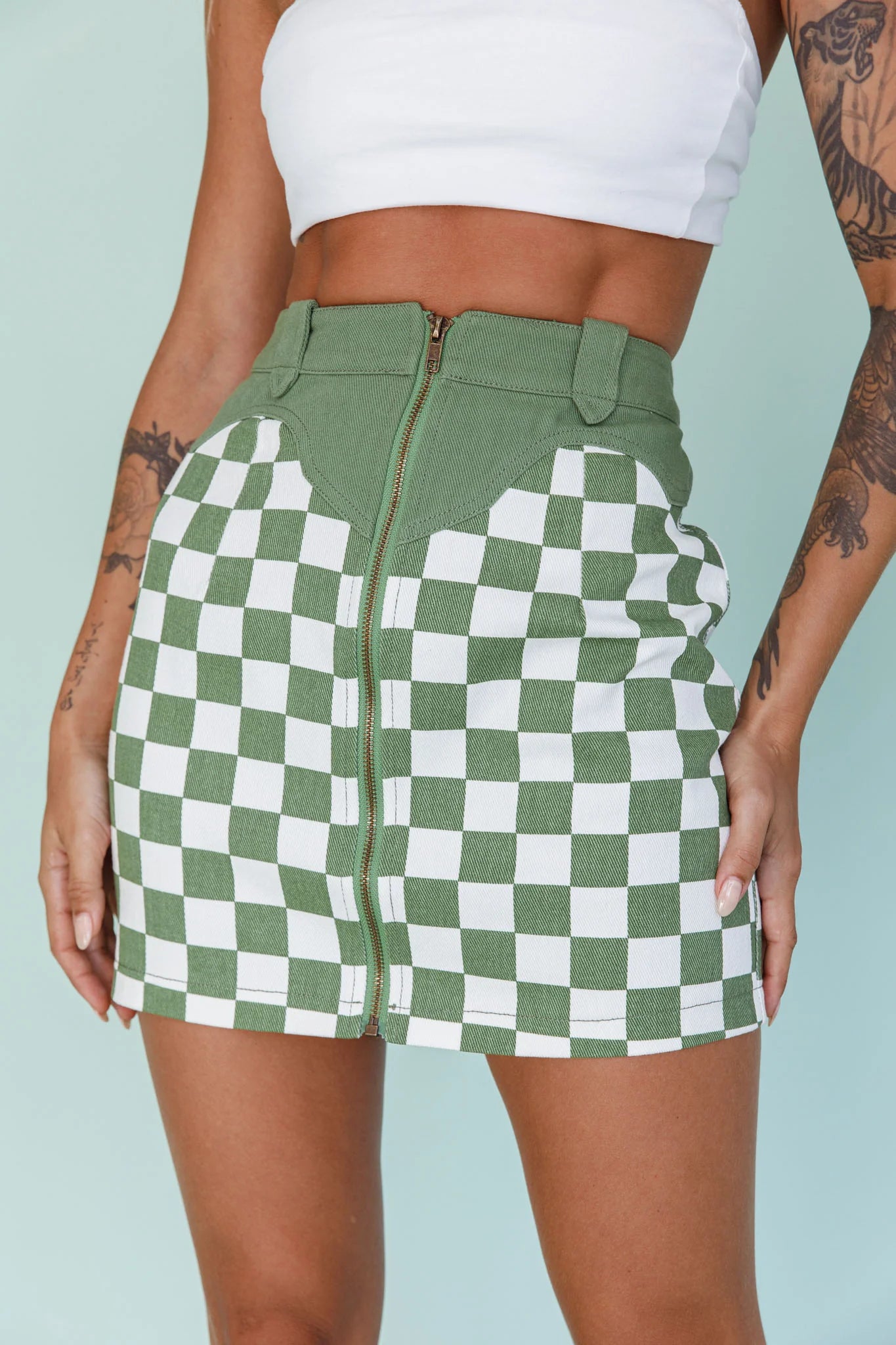 Turn heads in our super cute Rewind mini skirt. We are obsessed with the zipped front and cool, checkerboard pattern. Perfect for weekend mimosa lunching with your girls. Team it with a white singlet top and western boots for a look we are loving.