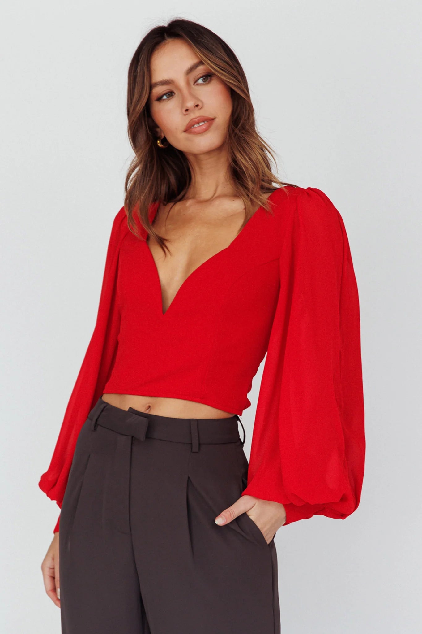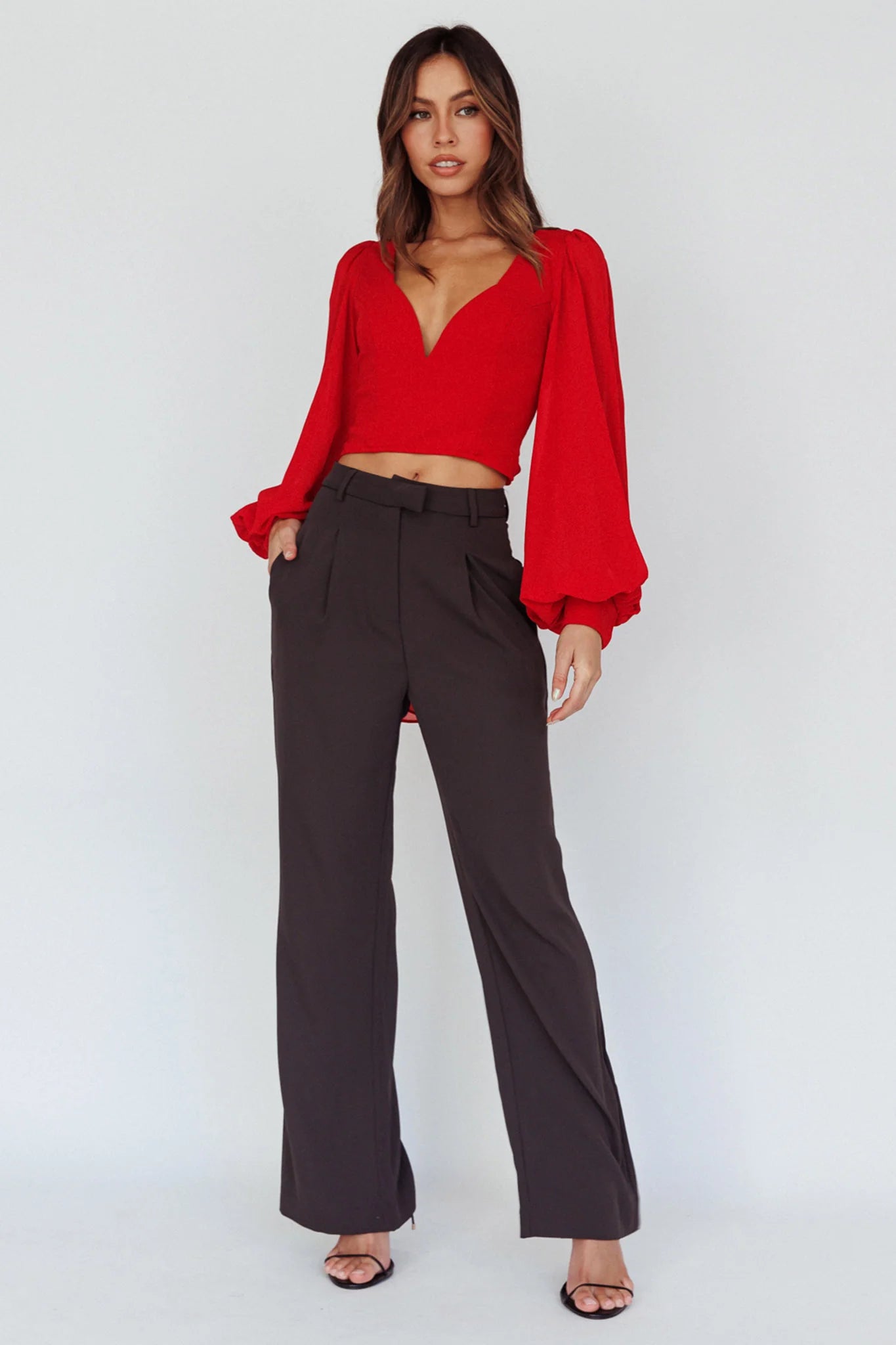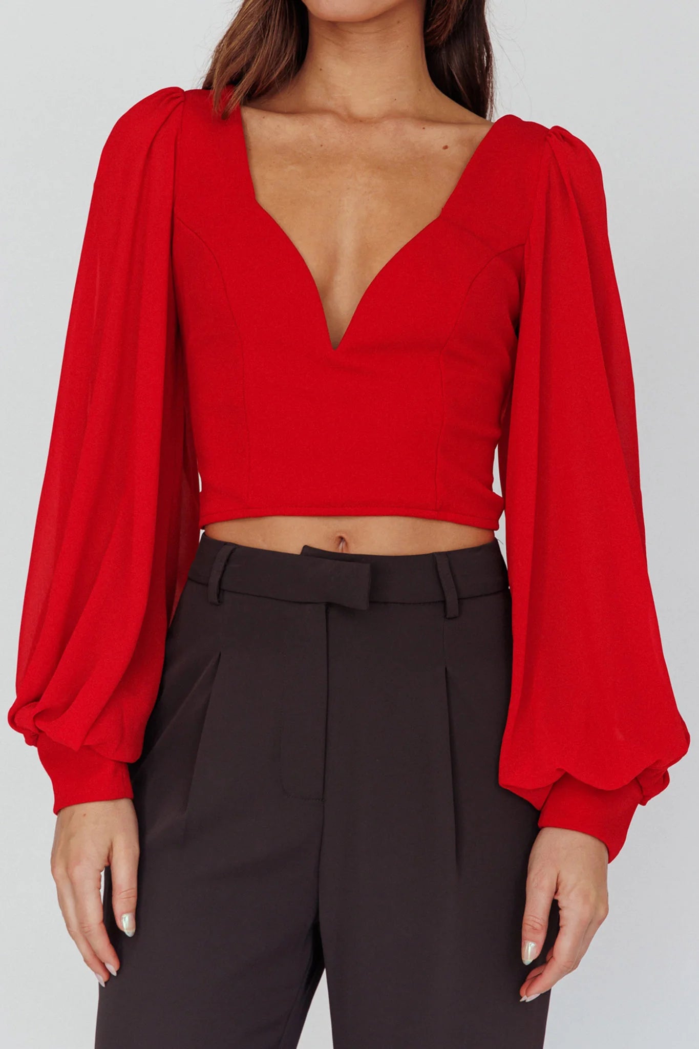 Be the leading lady in your own love story with our Romance Novel top. Featuring dreamy balloon sleeves, a sweetheart neckline and an open back that ties at the bottom. Perfect for catching the eye of your future leading man, teamed with our girly Rowena skirt or classic high-waisted pants.