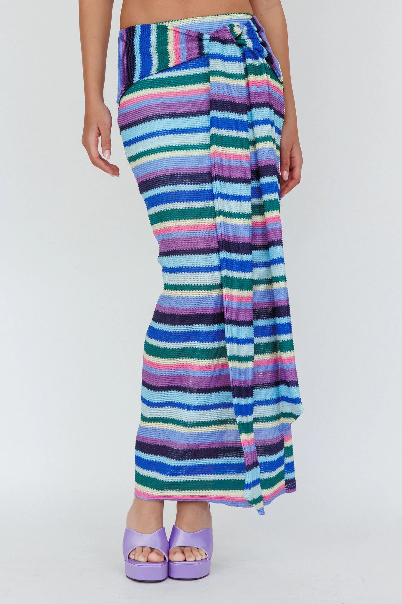 You'll feel like packing your bags cause our Sammi skirt is giving us all the vacay vibes. Featuring a striped knit and maxi length, it's the perfect choice for a weekend away with bae. Team it with its matching crop top and sandals for a chic look.