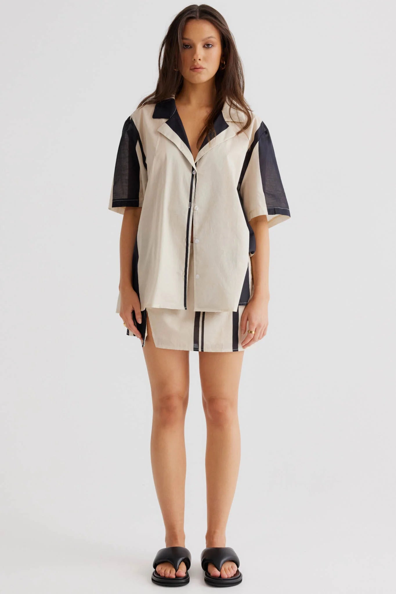 You'll feel like packing your bags for a weekend escape in the Alba shirt by SNDYS. Designed with a monochrome custom print, the Alba is a loose fit, button-up style that pairs perfectly with the Alba Mini Skirt or Alba pants. Throw on some sandals and you're ready to go!